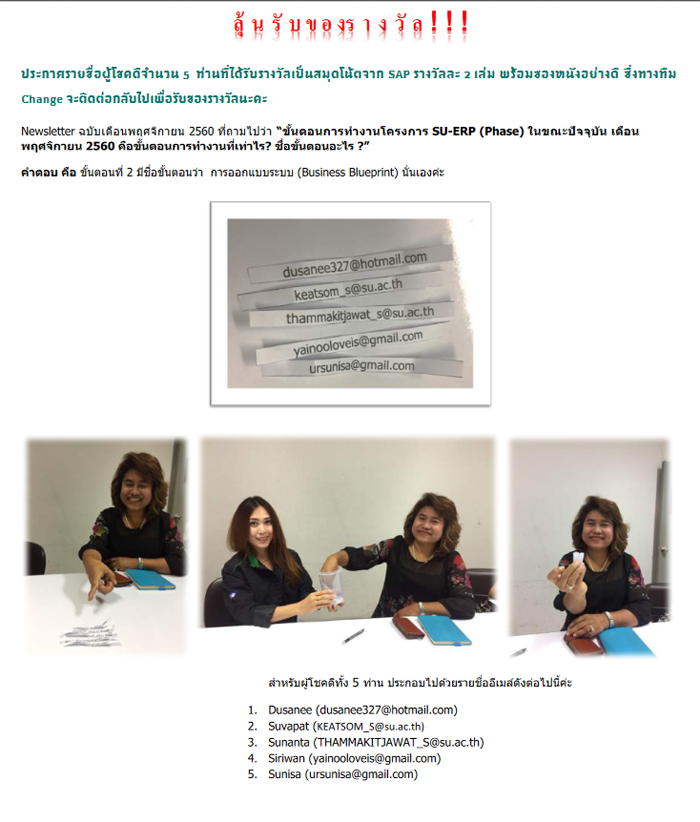 บุคลากรที่รับผิดชอบระบบ SU-ERP และช่องทางในการติดต่อประสานงาน